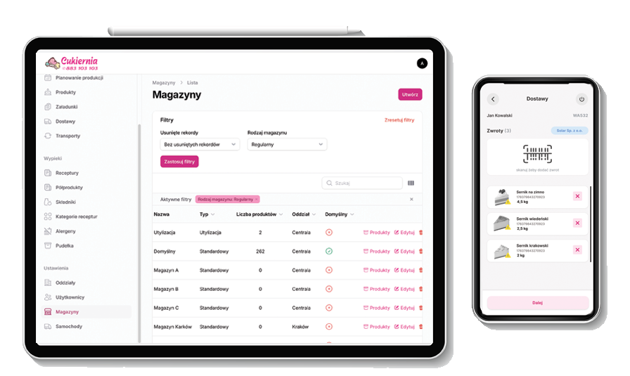 Trifood to kompleksowy system klasy end-to-end dla produkcji cukierniczej, obejmujący receptury, planowanie produkcji, łańcuch zamówień, rozliczenia, logistykę oraz obrót pomiędzy oddziałami. Warstwa administracyjna została oparta o Laravel i Filament, uzupełniona o dedykowany panel klienta do składania zamówień, natomiast aplikacja mobilna Flutter wspiera pracę dostawców i magazynierów, również z wykorzystaniem kolektorów Unitech.